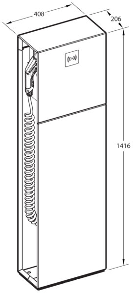 • Afmetingen laadpaal:  h 1416mm x b 408mm x d 206mm.